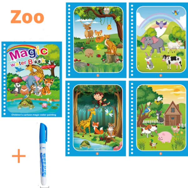 Vous remplissez le stylo d’eau et votre enfant se charge du reste ! Il l’applique sur ce cahier de coloriage à l’eau pour faire apparaître les couleurs comme par magie ! Il ne se tâche pas, ne se mouille pas et aucun produit chimique pour votre enfant.