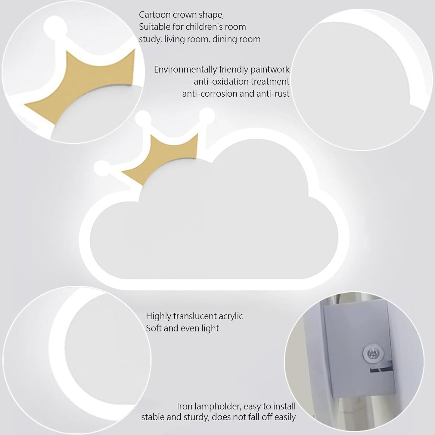 - 🌼Applique Formes de Nuages: Notre Applique Murale Interieur Inspire des formes des nuages pour créer une atmosphère de rêve dans la pièce.La forme des nuages est enfantine et très attrayante pour les enfants.Que ce soit le jour ou la nuit,elle apporte énergie et joie.Scène Applicable Elle peut être utilisée comme applique de chevet,applique de salon et applique de couloir.