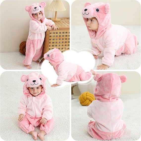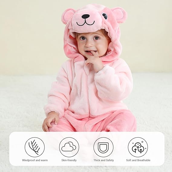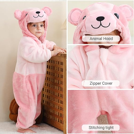 Combinaison BéBé d'hiver Animal Barboteuses Manteau à Capuche Enfants Pyjama Jumpsuit pour Fille Ours