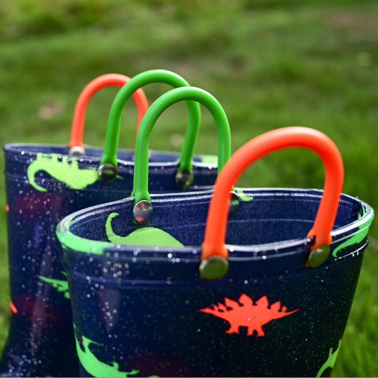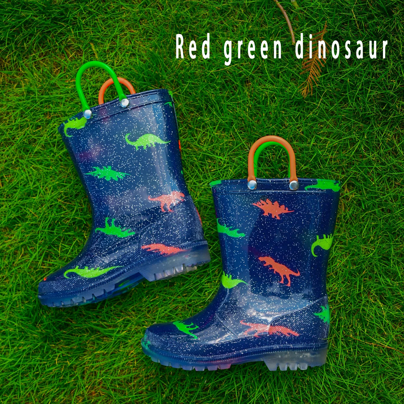 Bottes de pluie en PVC scintillantes de dinosaure de dessin animé mignon pour enfants, chaussures d'eau anti-eau imperméables 26-32