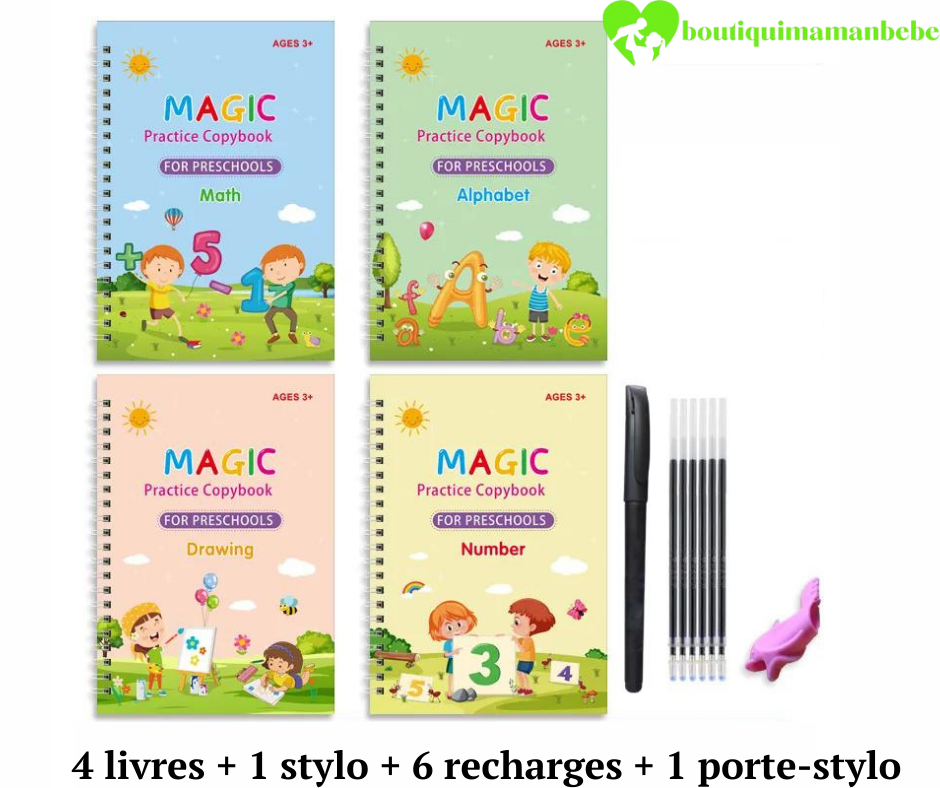 Nos livres d’écritures sont en relief permettant ainsi à l’enfant d’apprendre la bonne manière de calligraphier les chiffres, les lettres et les formes géométriques. Un stylo effaçable est offert avec les livrets. Vous éviterez ainsi la lenteur et l’illisibilité de son écriture, et il prendra du plaisir à écrire !