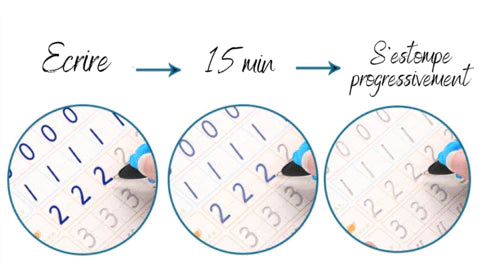"Mes enfants ont appris à écrire l'alphabet et les chiffres en seulement 1 mois alors que tout semblait être un jeu ! Pour eux, l'encre qui disparaît est magique !!"