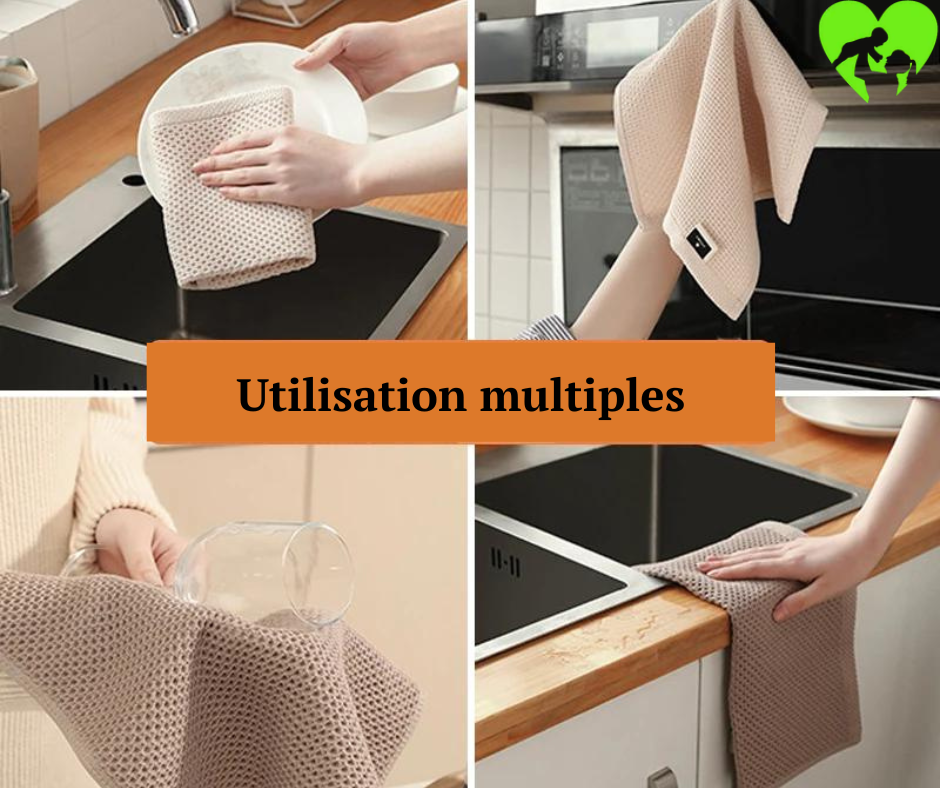 3. Les torchons conviennent au nettoyage de vos ustensiles de cuisine délicats, assiettes et casseroles, verres à boire, etc.