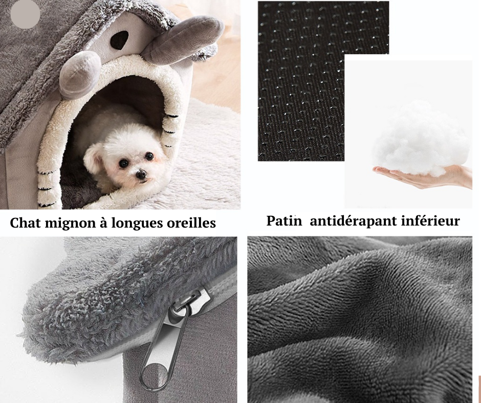 Conception amovible et lavable: La conception à glissière dissimulée du lit pour chien peut vous aider à démonter et à nettoyer facilement le lit pour chien. Les tapis à l'intérieur de la maison du chat sont amovibles pour un nettoyage plus facile. Le lit pour chat est détachable et pliable pour un rangement facile. La conception antidérapante au bas du lit pour chat l'empêche de bouger librement, gardant votre animal de compagnie dans un environnement stable et sûr.