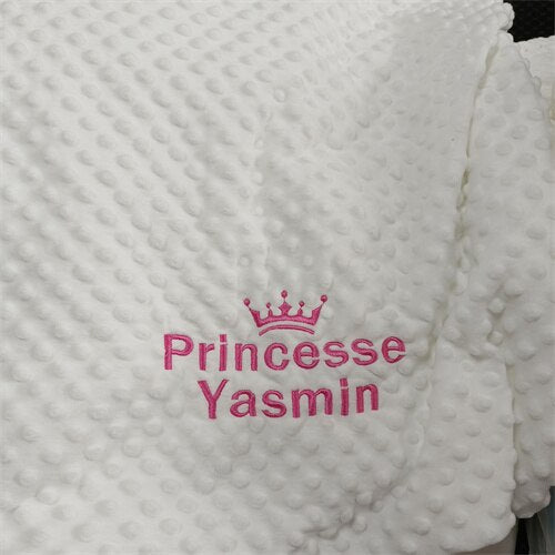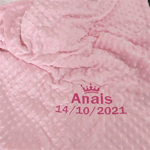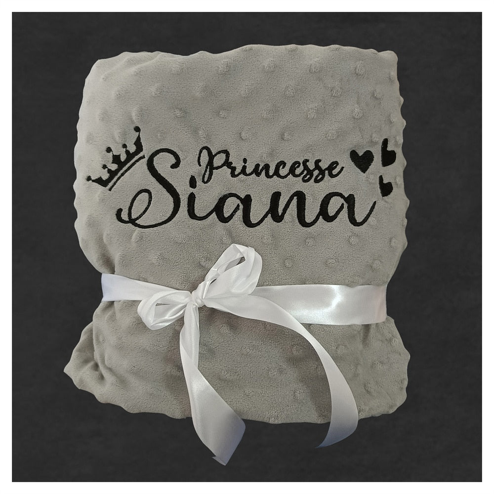 Description: nom de bébé personnalisé brodé sur la couverture.