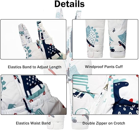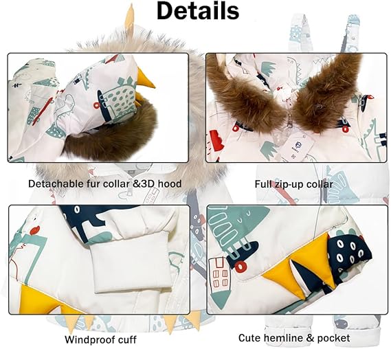 Design Dinosaure Amusant : Avec un imprimé dinosaure ludique et des détails 3D, ce baby snow suit rendra les sorties en plein air encore plus excitantes et magiques, tout en offrant confort et style.