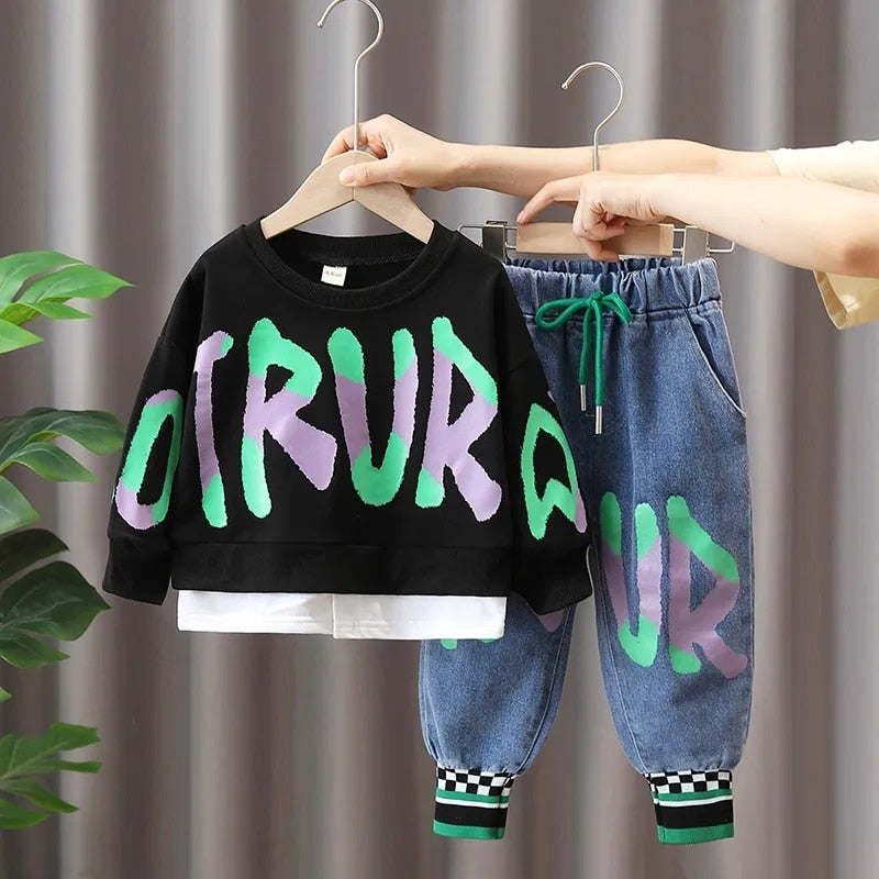 Ensemble Sweat-shirt Et Pantalon De Jeans Pour Enfant 2 Pièces
