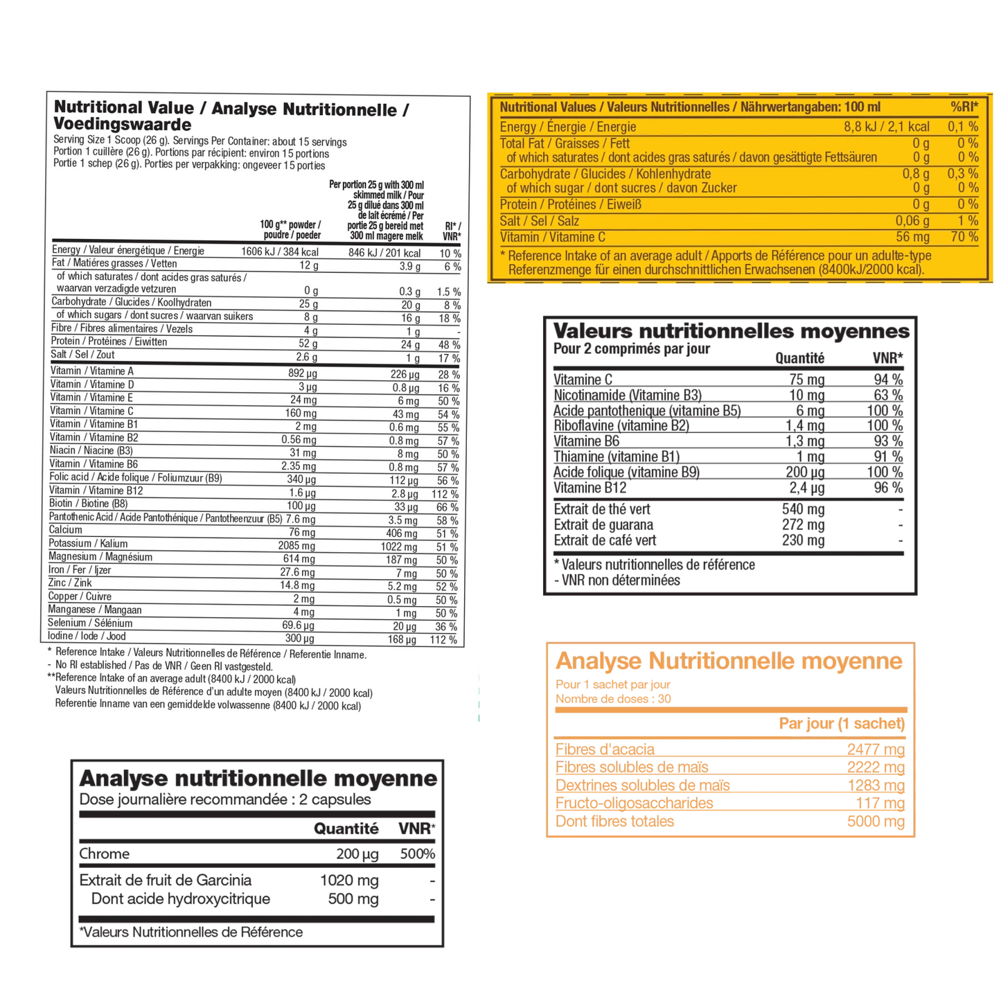 -C'est le nouveau programme qui vous permettra de changer totalement l'apparence de votre corps ! Corps svelte et musclé garanti ! Forme éblouissante ! Les deux références 528 et 529 (Vanille ou Chocolat) s'adressent aux débutants.