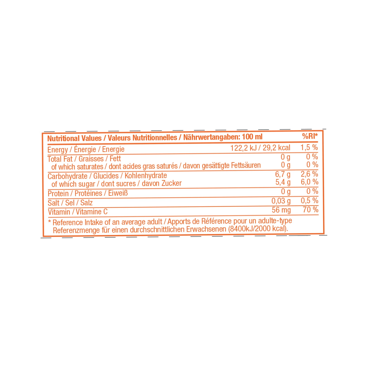 -Gel d’Aloe Vera stabilisé (Aloe Bardadensis) [gel d’Aloe vera (86%), vitamine C (acide ascorbique), antioxydant (acide ascorbique), acidifiant (acide citrique)], concentré de purée de mangue (Mangifera indica L.) (10%), fructose, arôme (mangue).