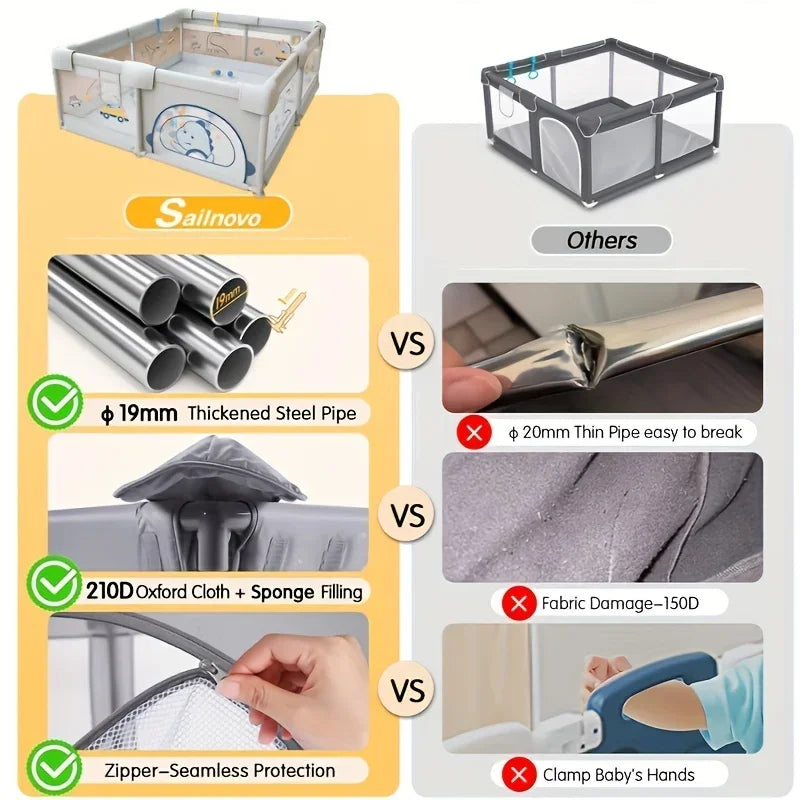 Grande taille pour appartement/petite chambre. Matériau sûr: la cour de jeu pour bébé est fabriquée en tissu oxford de cryptage robuste et en tissu résistant, sans BPA et non toxique, sûr et écologique.