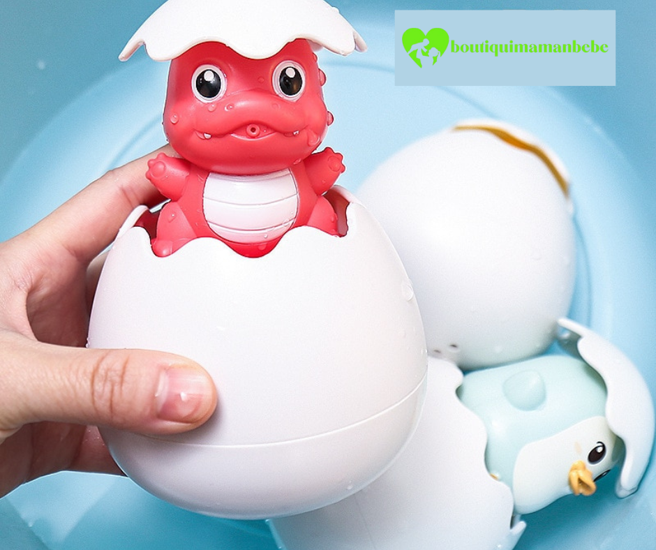 â JOUETS DE BAINâą-Sortez l'eau et aspergez l'eau de la sortie infĂ©rieure.ImmergĂ© dans l'eau, l'eau dans la coquille d'oeuf monte, et les animaux flottent lentement hors de la coquille d'oeuf