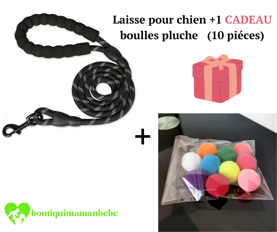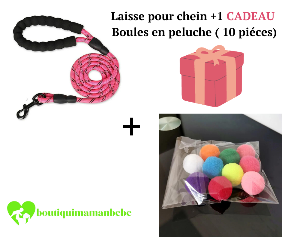 LAISSE POUR CHIEN + 1 CADEAU BOULES EN PELUCHE ( 10 pièces )