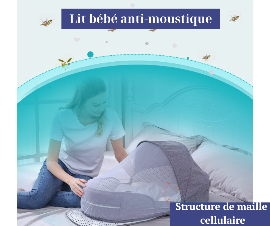 Lit de bébé portable avec moustiquaire, accent de bébé endormi, nouveaux nés,0-12 mois. Lit pliant bébé avec moustiquaire: convient à tous les nouveau-nés, avec un design bionique qui imite le ventre confortable et offre au bébé un environnement agréable. Dans le berceau, il y a des jouets mignons pour votre bébé.