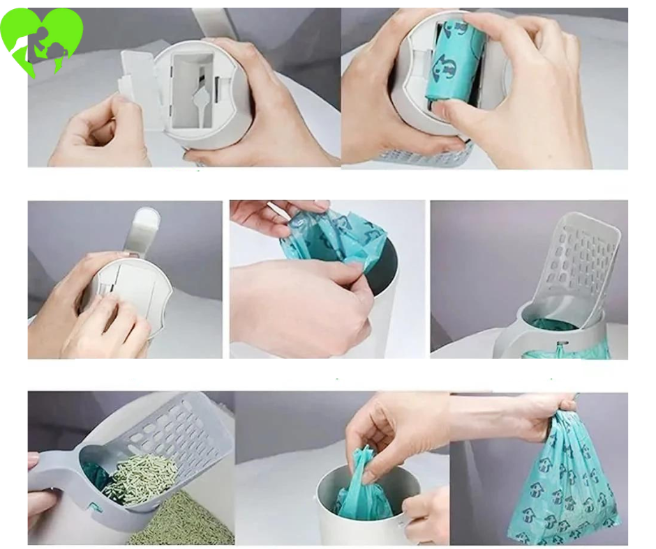 1. Cette pelle à litière pour chat est livrée avec une poubelle, ce qui est pratique et permet de gagner du temps pour le nettoyage.