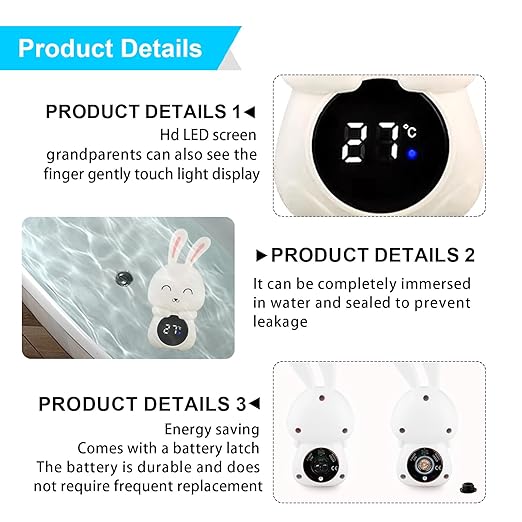- 【Design portable】notre thermomètre de bain pour bébé est petit et léger, et le design portable signifie que vous pouvez l'emmener partout avec vous. Notre thermomètre de baignoire a l'apparence d'un lapin qui peut attirer les yeux de l'enfant afin qu'il ne refuse pas de prendre un bain.